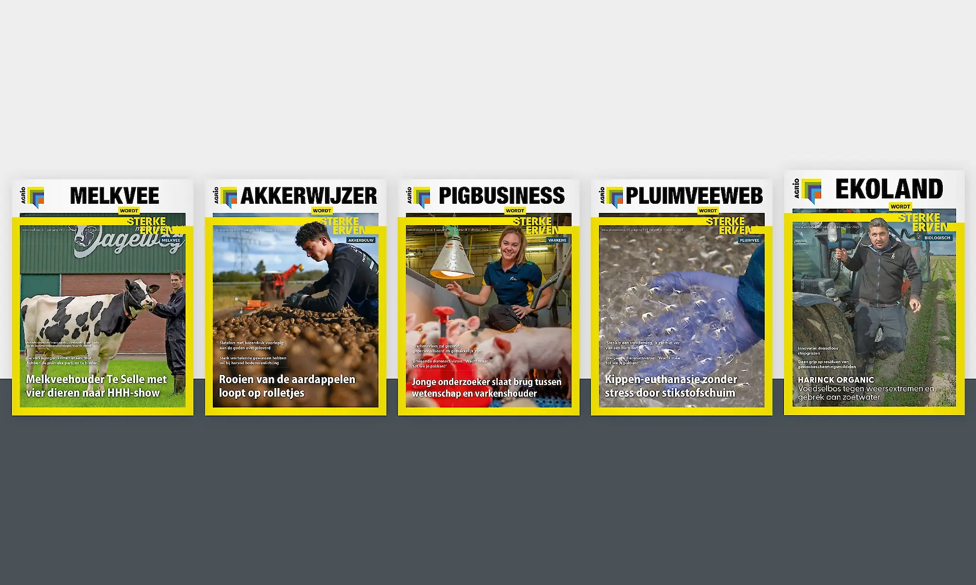 Met onze nieuwe naam Sterke Erven verandert er in print alleen het uiterlijk. De vakbladen blijven per sector en per regio verschijnen. Ook de inhoud blijft zoals de lezers van ons gewend zijn: speciaal geschreven voor akkerbouwers, pluimveehouders, varkenshouders, melkveehouders en biologische boeren van Nederland. We hebben daarbij goed geluisterd naar onze lezers.